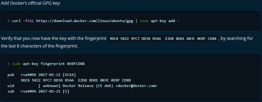 $ curl -fsSL https://download.docker.com/linux/ubuntu/gpg | sudo apt-key add -