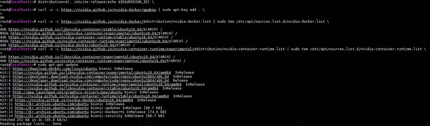 curl -s -L https://nvidia.github.io/nvidia-docker/$distribution/nvidia-docker.list | sudo tee /etc/apt/sources.list.d/nvidia-docker.list \