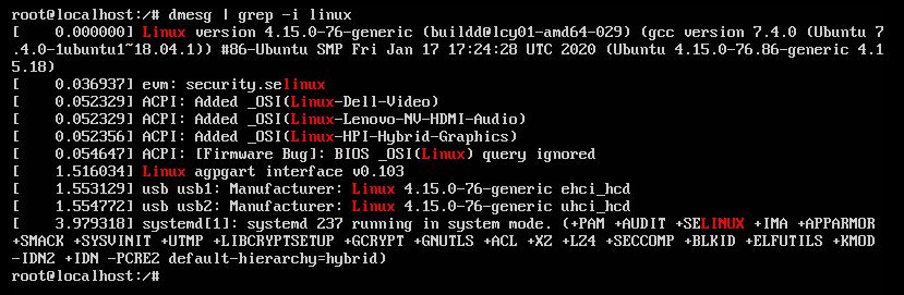 dmesg | grep -i linux와 같은 명령어가 되겠습니다.